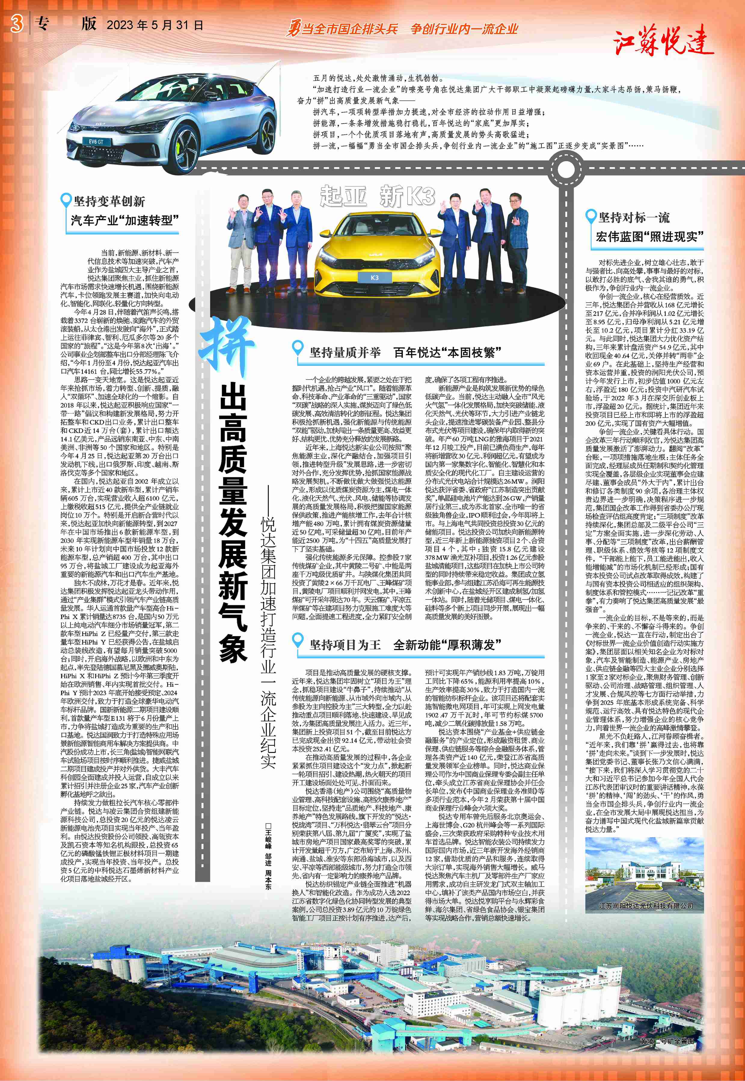 汽車(chē)產(chǎn)業(yè)的發(fā)展取得的顯著(zhù)成效,2012年?yáng)|風(fēng)悅達起亞汽車(chē)公司社會(huì )廣為關(guān)注的年產(chǎn)30萬(wàn)臺整車(chē)、25萬(wàn)臺發(fā)動(dòng)機的汽車(chē)第三工廠(chǎng)順利開(kāi)工,正在緊鑼密鼓地抓緊建設,預計到2014年一季度建成投產(chǎn),使汽車(chē)年產(chǎn)能將超過(guò)80萬(wàn)臺以上。全新K系列戰略車(chē)型K3榮耀上市,在2013新浪年度車(chē)評選中,K3和K2分別獲得年度中級車(chē)和年度緊湊型車(chē)殊榮,有力地對外展示了公司K系列車(chē)型的實(shí)力。